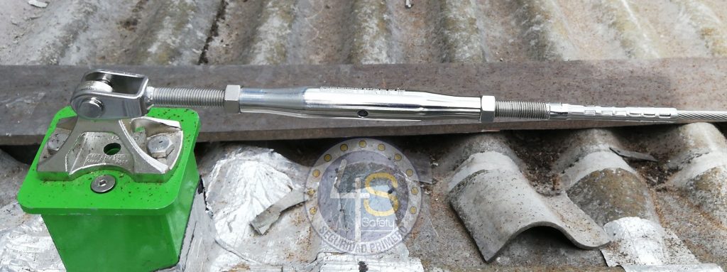 Línea de Vida Horizontal Fija en Cable de Acero Inoxidable. Sus componentes dependen del tipo de cubierta o estructura a Instalar. Usualmente son usadas para los mantenimientos en cubiertas, canales, etc. aunque sus aplicaciones son muchas.